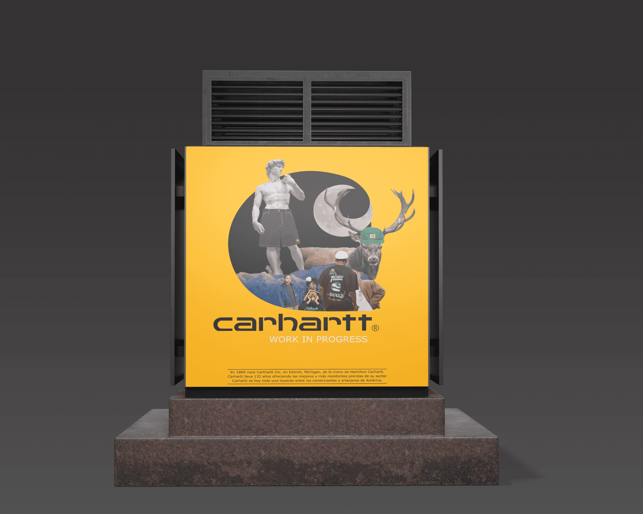Este proyecto explora la identidad de Carhartt a través de un collage surrealismo digital que fusiona elementos clásicos, naturaleza y estética streetwear. La composición utiliza el logotipo de la marca como una ventana de recorte, Integrando diversas texturas y personajes para construir una narrativa visual que refleja la durabilidad y el estilo de vida asociado a la firma.