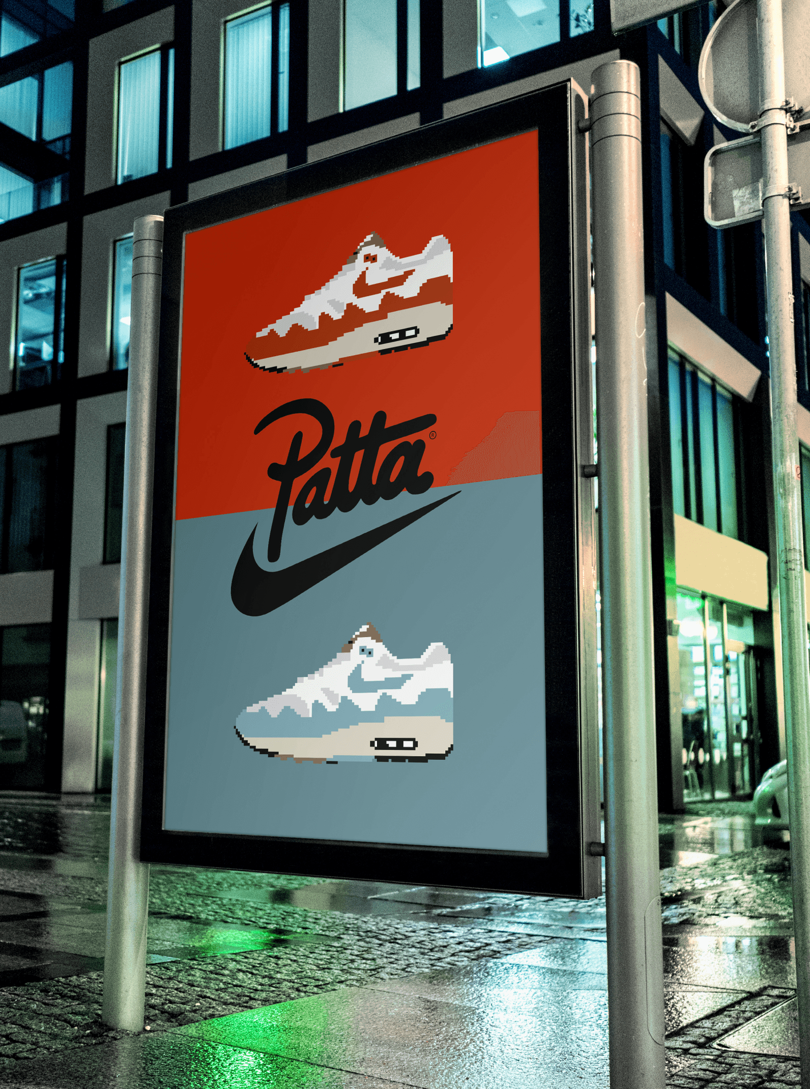 Este proyecto se centra en la reinterpretación de la silueta Nike Air Max 1 x Patta mediante una técnica de pixelart . Creando una pieza publicitaria que conecta la nostalgia de los 8 bits con la cultura urbana actual.